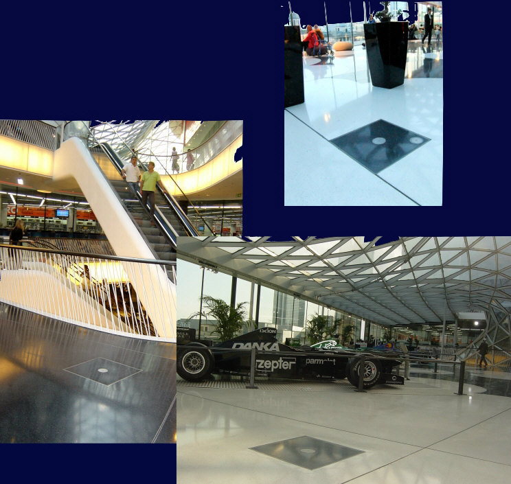 StarConnex floor tanks in EKZ Frankfurt Palais. The diverse granite-surfaced covers were inlaid into the architecture.